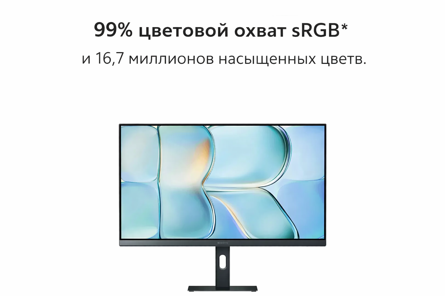 Xiaomi Monitor A24i 2026 выполнен в строгом черном цвете и получил аккуратный современный внешний вид. Одной из особенностей модели стал сверхтонкий корпус толщиной всего 7.5 мм, благодаря чему монитор выглядит легко и стильно на рабочем столе. Такой дизайн хорошо подойдет как для домашнего рабочего места, так и для офиса.